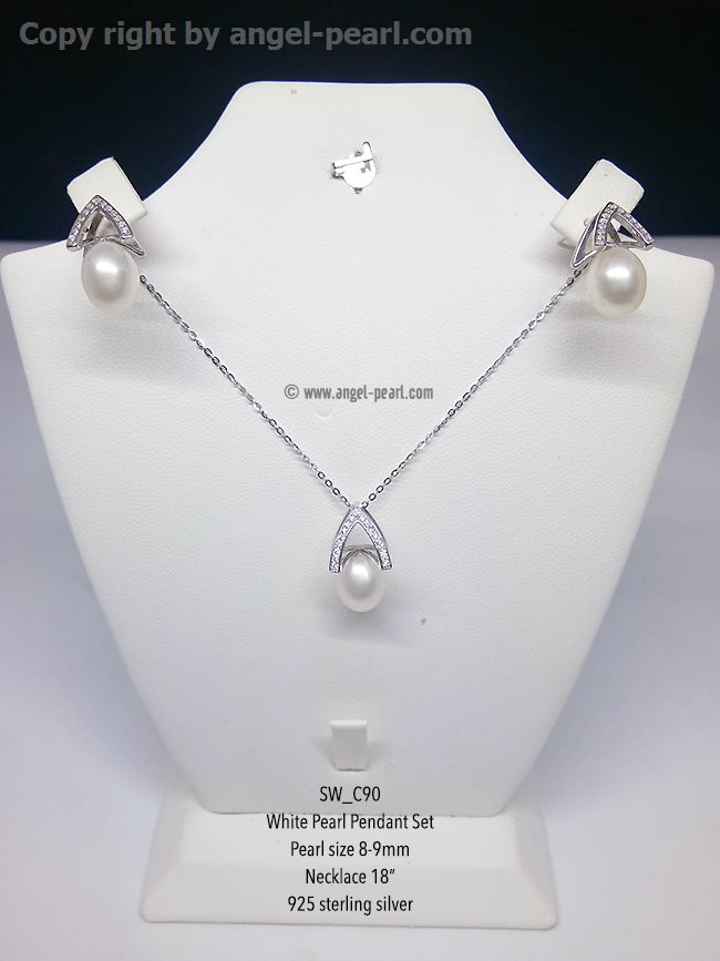 ชุดจี้ไข่มุกแท้ทรงหยดน้ำ ขนาด 8-9mm เงาวาวสวย
