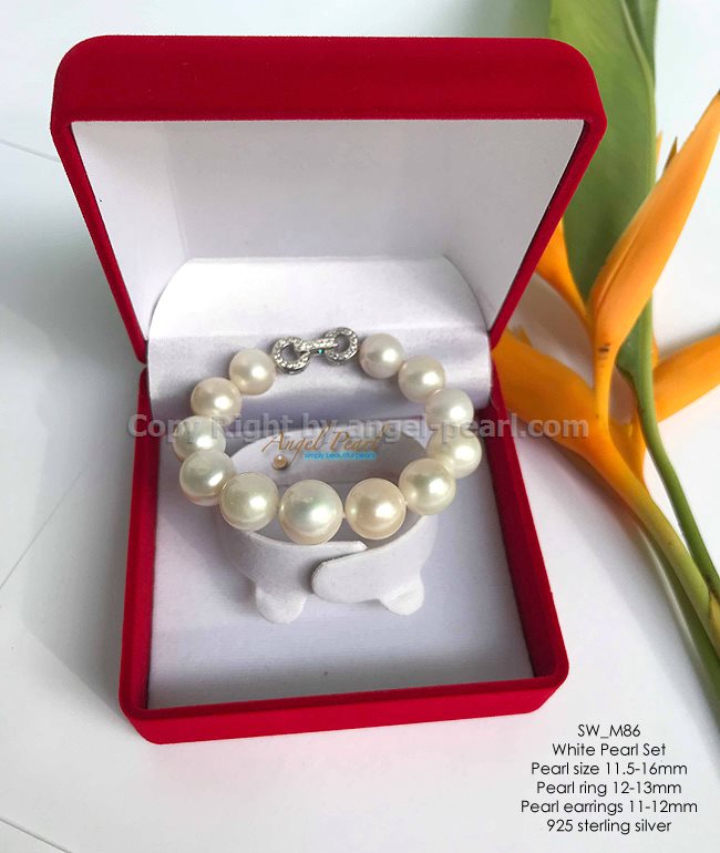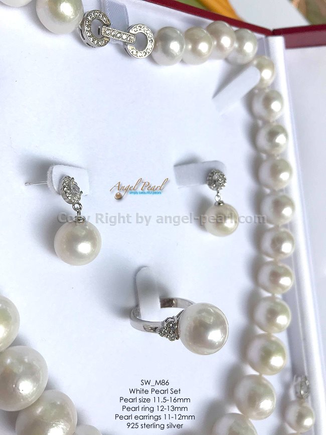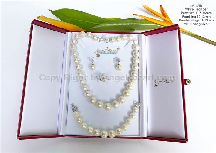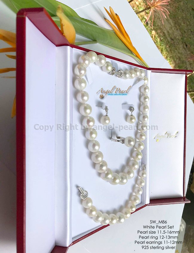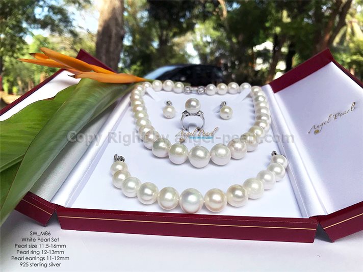 ชุดเครื่องประดับไข่มุกแท้สีขาว ขนาด 11.5-16mm AAA