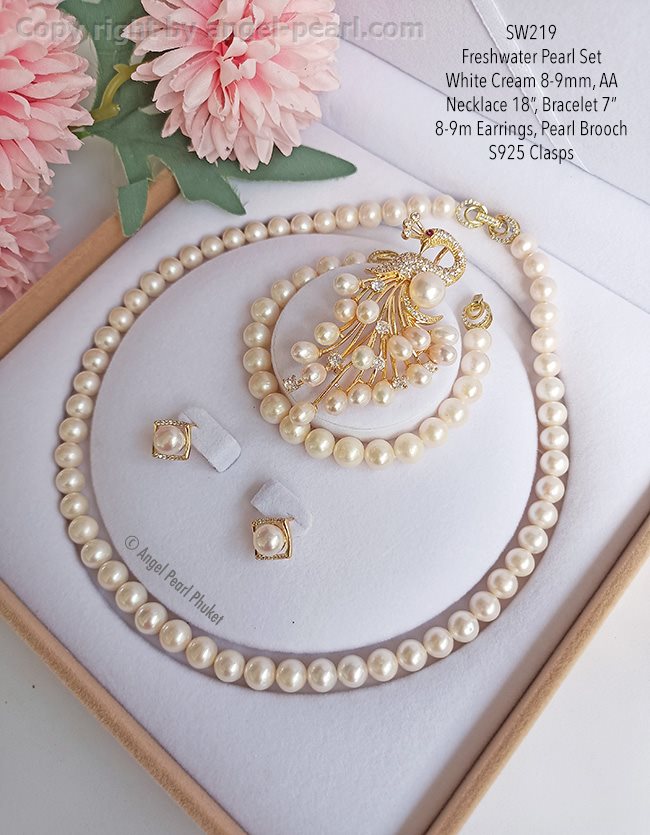 [SW238] ชุดไข่มุกแท้ภูเก็ต สีขาวคลาสสิค ขนาด 8-9mm Grade A+
