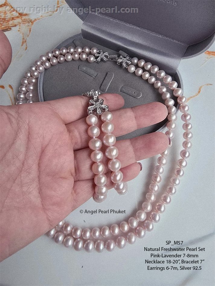 ชุดเครื่องประดับไข่มุกแท้สีชมพูลาเวนเดอร์ สวยหวาน สองสายสวยหรู มุกน้ำงามเงาวาว สีสวย มีรอยธรรมชาติเล็กน้อย