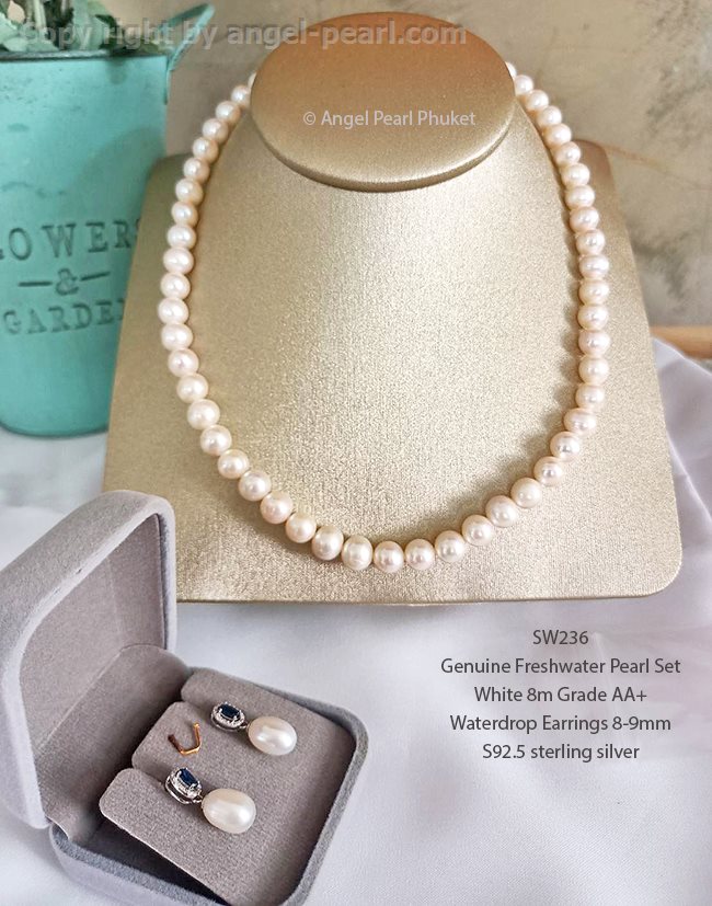 [SW238] ชุดไข่มุกแท้ภูเก็ต สีขาวคลาสสิค ขนาด 8-9mm Grade A+