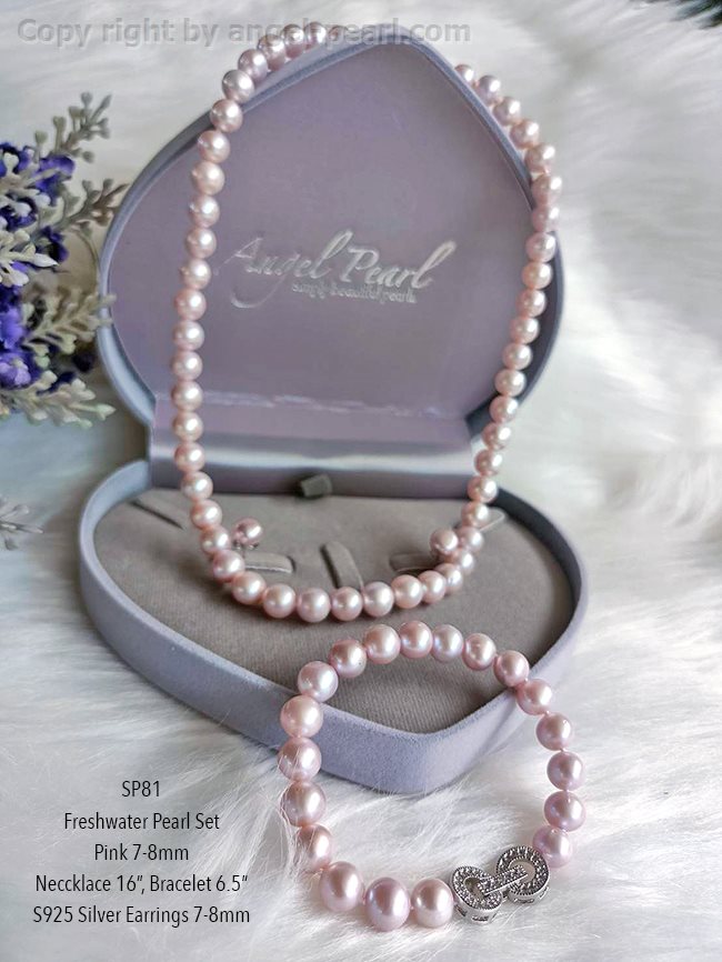ชุดเซตเครื่องประดับไข่มุกแท้ สีชมพูลาเวนเดอร์สวยหวาน น้ำงาม คัดเกรดสวย มีรอยธรรมชาติเล็กน้อย ดีไซน์หรู คลาสสิค
