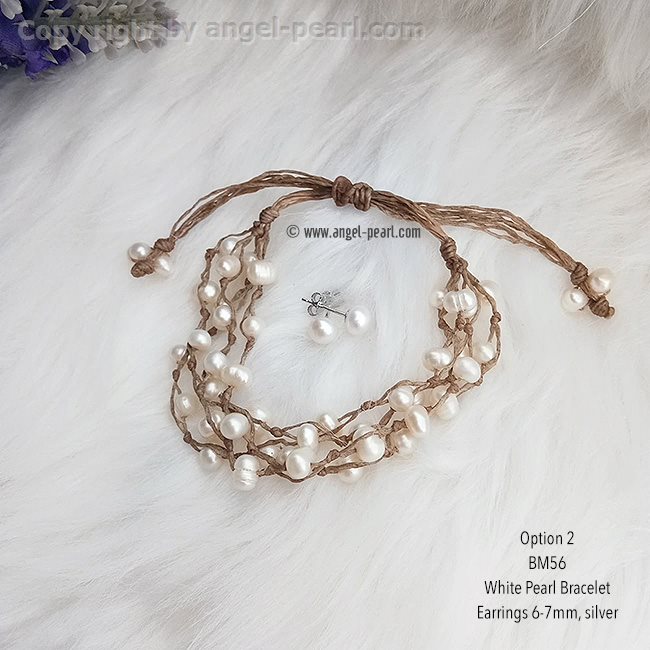 สร้อยข้อมือไข่มุกแท้ถักเชือกเทียน ปรับสั้นยาวได้