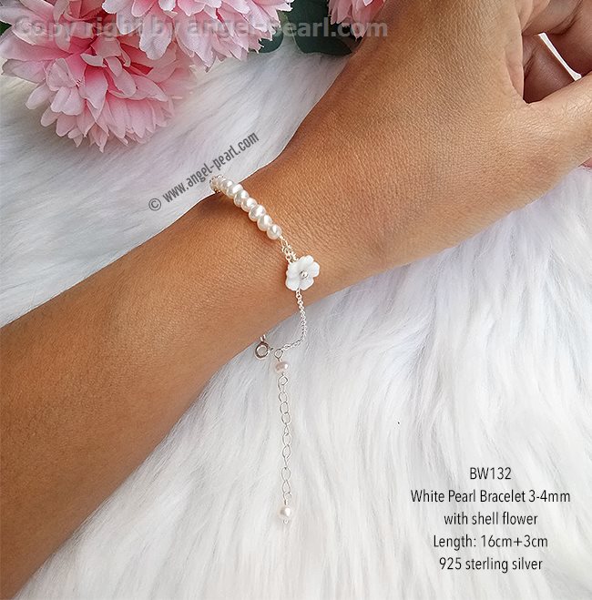 สร้อยข้อมือไข่มุกแท้สีขาว มุกจิ๋ว ดีไซน์น่ารัก