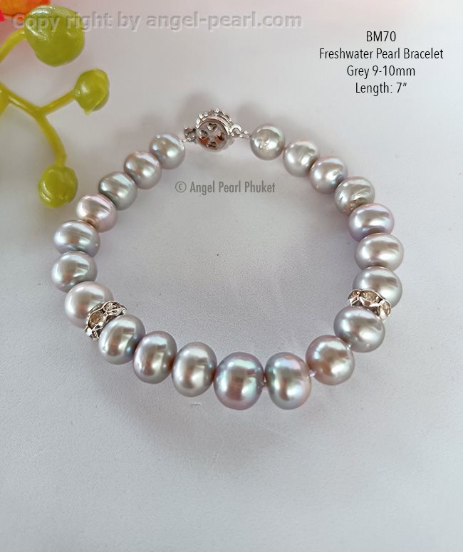 สร้อยข้อมือไข่มุกแท้ น้ำงามเงาวาว มีรอยธรรมชาติเล็กน้อย ร้อนคั่นล้อเพชรน่ารัก ไข่มุกขนาดกำลังดี