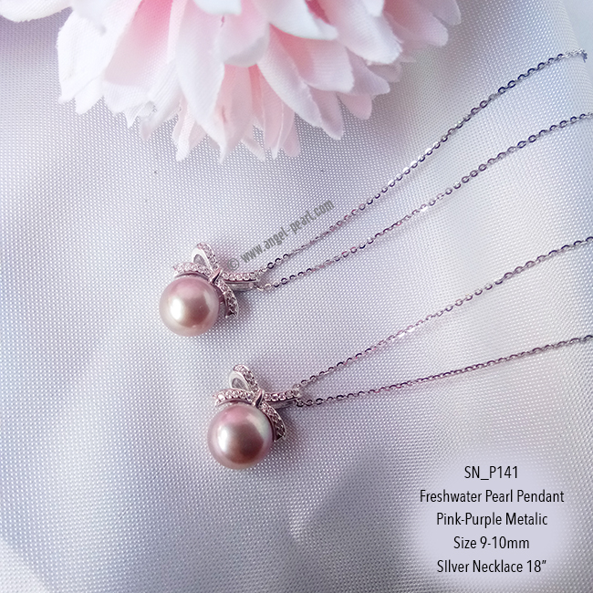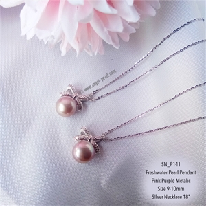 สร้อยคอพร้อมจี้ไข่มุกแท้สีขาว&สีชมพูม่วง น่ารัก 9-10mm