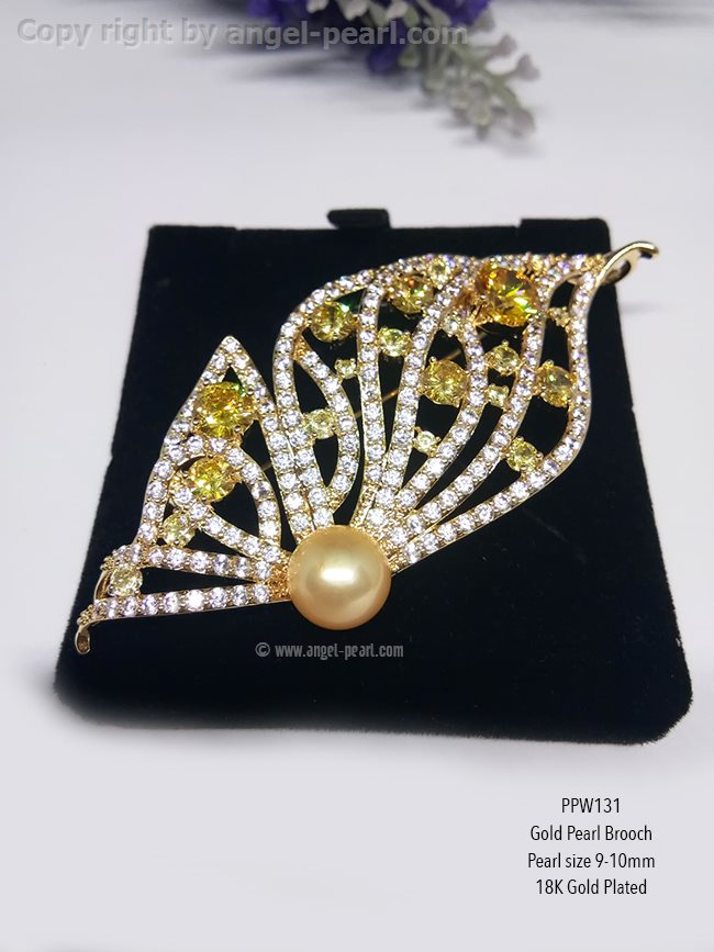 เข็มกลัดไข่มุกแท้สีทอง มุกขนาด 9-10mm ดีไซน์สุดหรู