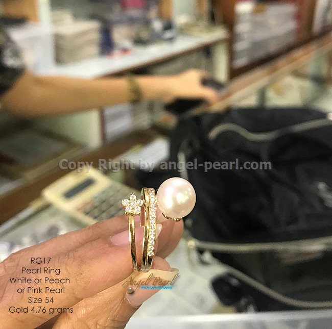 [RS290] แหวนไข่มุกแท้สีชมพูลาเวนเดอร์ 10.3mm, AA