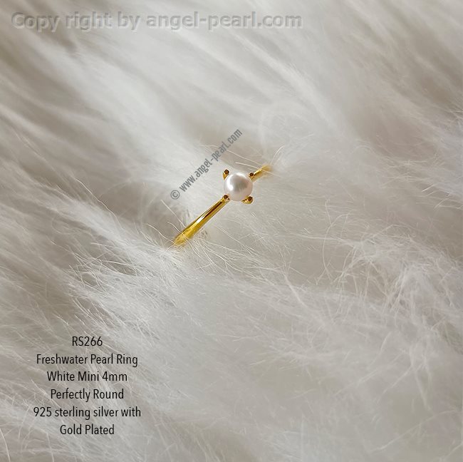 แหวนไข่มุกน้ำจืดแท้สีขาว Mini 4mm กลมสนิท
