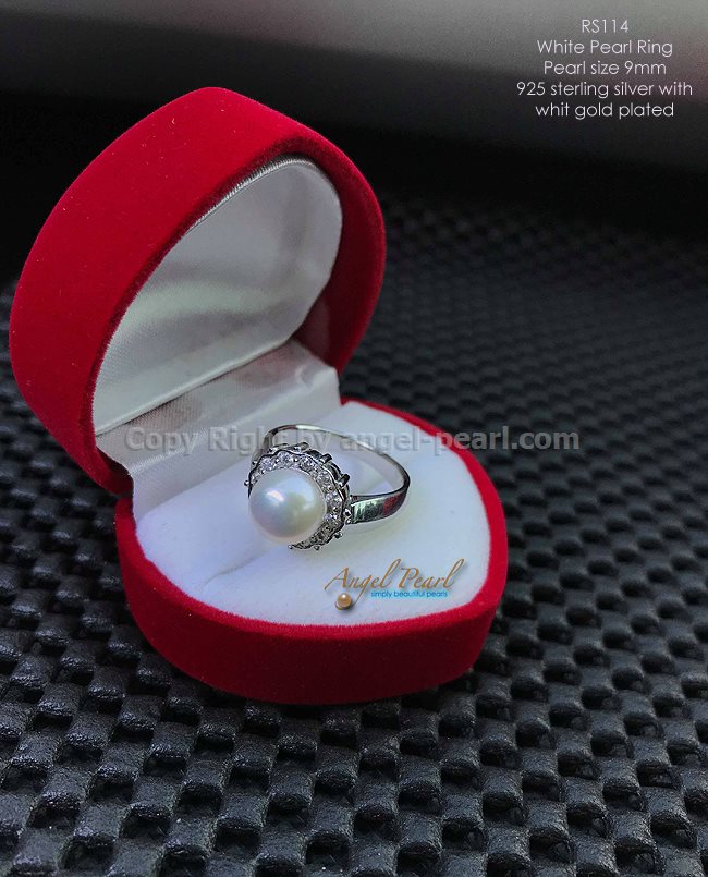 แหวนไข่มุกแท้ดีไซน์สุดหรู มุก 8-9mm เงินแท้เคลือบทองคำขาว