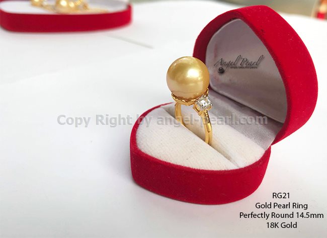 แหวนไข่มุกแท้มุกสีทอง สีสวย น้ำงาม และมีความแวววาวสูง มุกเกรด AAA