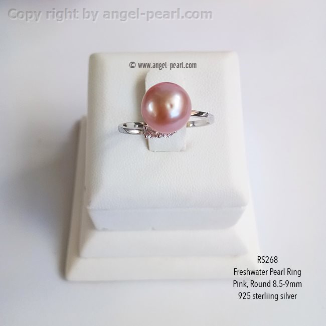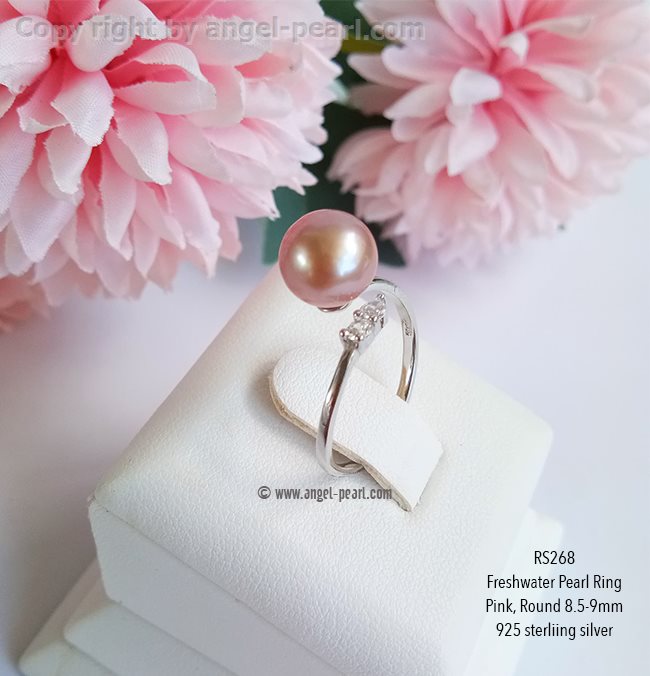 [RS290] แหวนไข่มุกแท้สีชมพูลาเวนเดอร์ 10.3mm, AA
